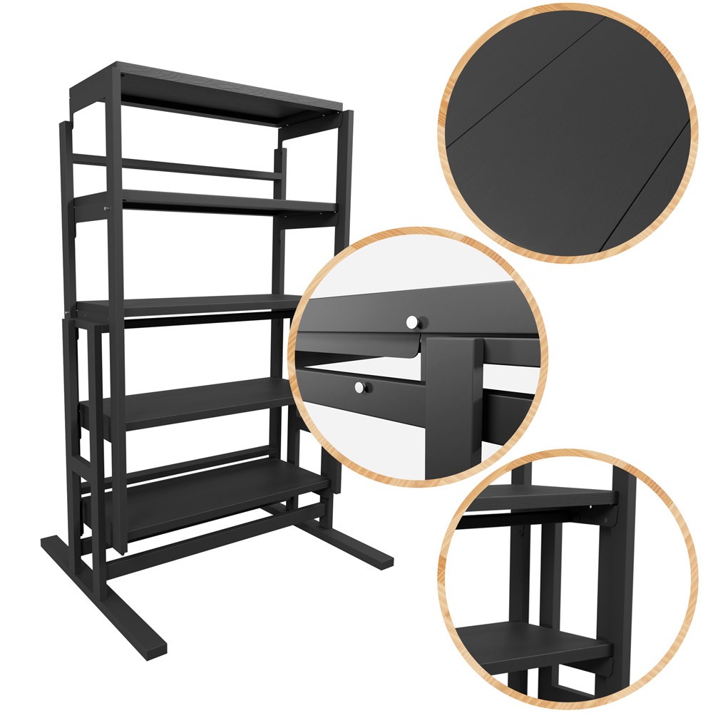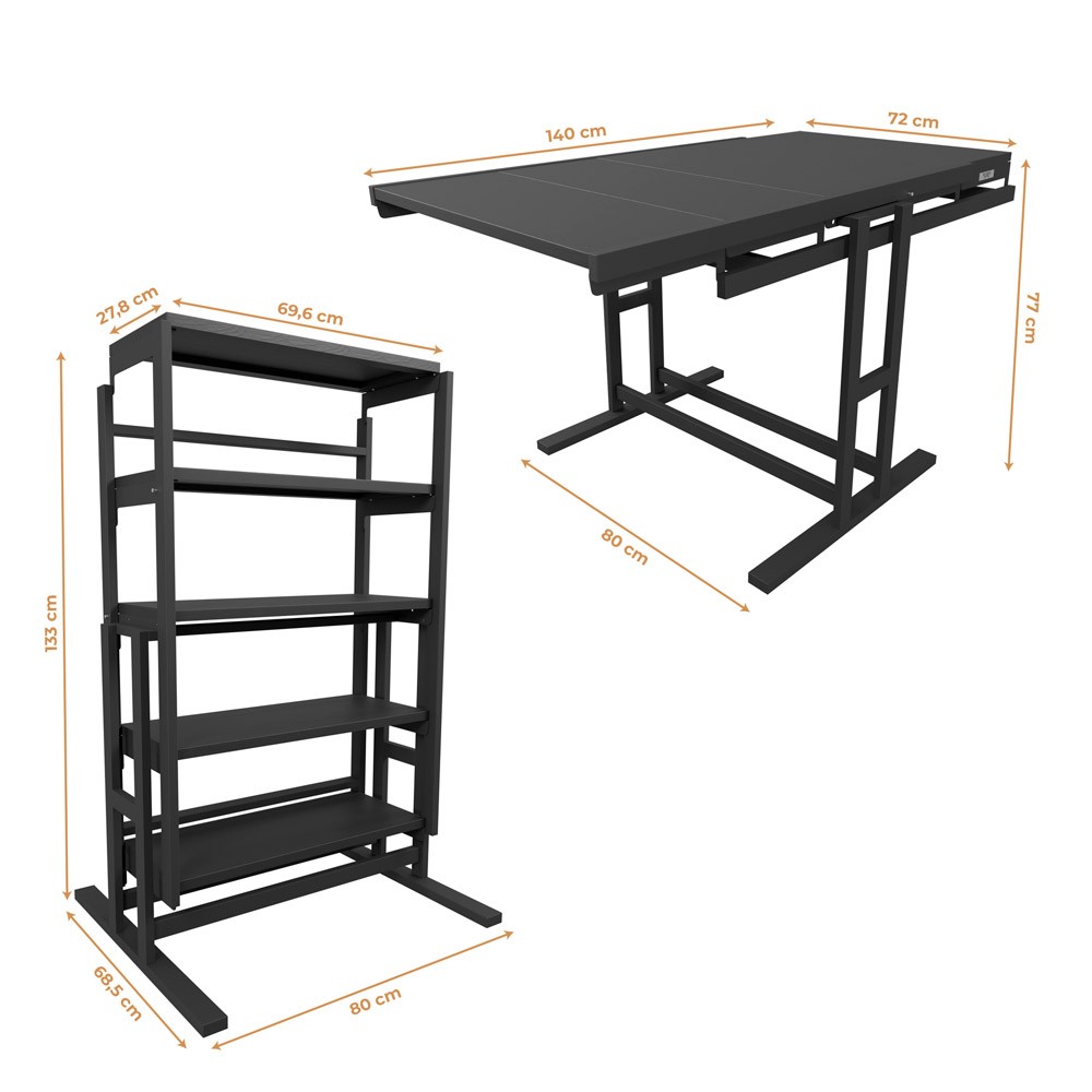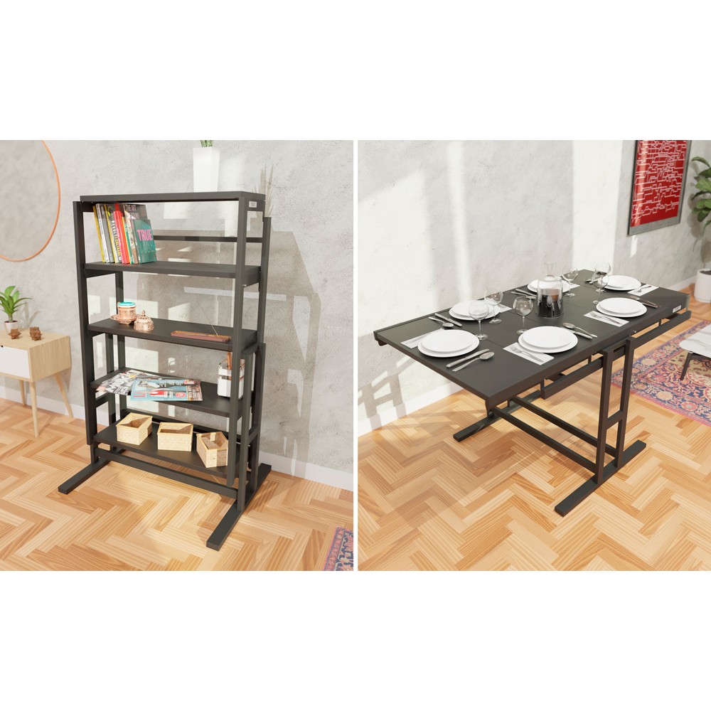 Une fois la table repliée, cela devient une étagère où vous pourrez y entreposer et mettre en valeur vos livres favoris, de la déco ou encore vos plus jolies plantes et cela sur ses 5 étages de rangement.