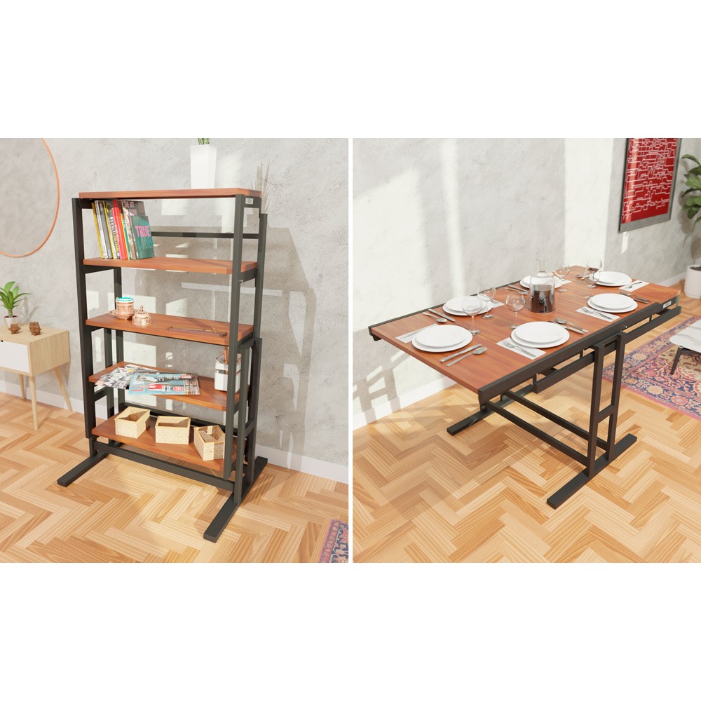 Une fois la table repliée, cela devient une étagère où vous pourrez y entreposer et mettre en valeur vos livres favoris, de la déco ou encore vos plus jolies plantes et cela sur ses 5 étages de rangement.